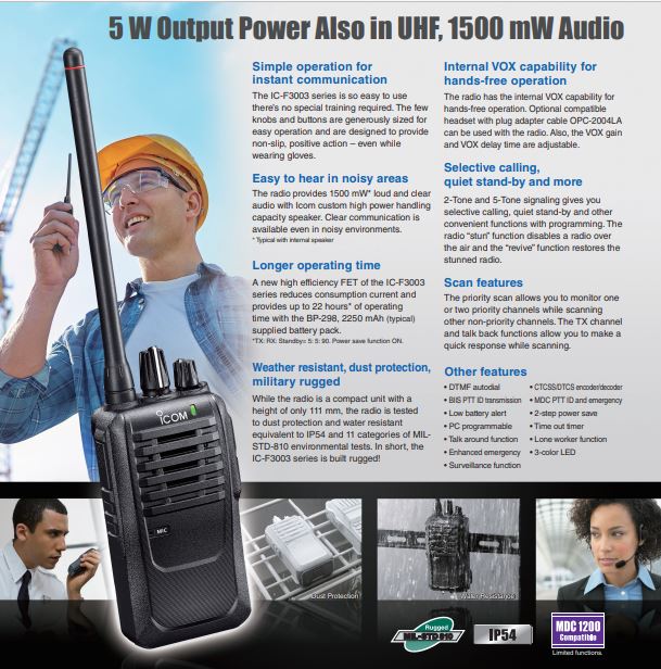 Tóm lại, bộ đàm ICOM F4003 là một sản phẩm đáng tin cậy và hiệu quả trong việc liên lạc không dây trong môi trường khắc nghiệt. Với các tính năng tiên tiến và độ bền cao, nó là lựa chọn lý tưởng cho các nhóm hoạt động trong các lĩnh vực như công trình xây dựng, khai thác mỏ, dầu khí và nhiều lĩnh vực khác.