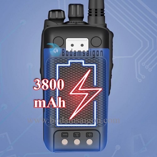 Pin 3800mAh của bộ đàm Motorola GP IP67 là một điểm nổi bật quan trọng của sản phẩm. Với dung lượng pin lớn, người dùng có thể sử dụng bộ đàm trong một thời gian dài mà không cần phải sạc lại. Điều này rất hữu ích trong các hoạt động ngoài trời, khi bạn không thể sạc pin liên tục.