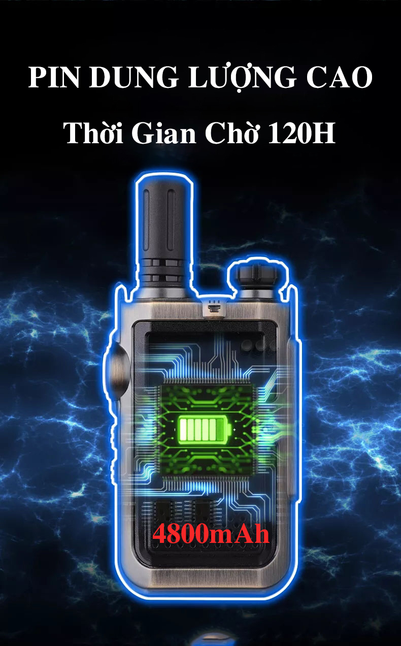 Bộ đàm 5G W80 Với dung lượng pin 4.800mAh mạnh mẽ, IP-5G đảm bảo bạn luôn kết nối suốt cả ngày. Không còn lo lắng về việc hết điện khi bạn cần nó nhất. Tiếp tục hội thoại!