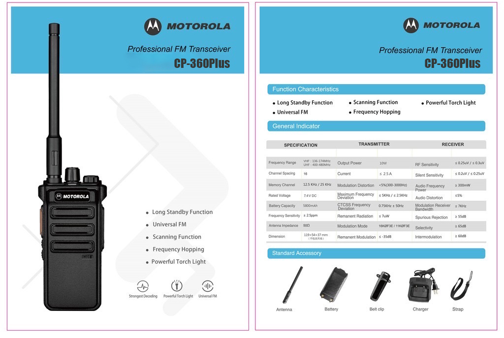 Với những tính năng vượt trội như vậy, bộ đàm Motorola CP360Plus là một sản phẩm đáng tin cậy và hoàn hảo cho các công việc liên lạc cần sự chính xác và đáng tin cậy.